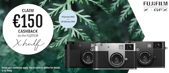 Inspired by half-frame cameras, the X half is a fun addition to Fujifilm’s range, and features a rear LCD monitor, offering vertical shooting and movie recording at a 3:4 aspect ratio. It has an optical viewfinder which evokes the feel of film cameras, recreating and improving upon distinctive rendering capabilities. It also offers a unique new "2-in-1" mode, which allows users to combine two still images or movies into one composition in-camera, providing richer storytelling capabilities than single images.
