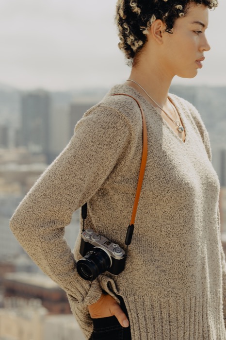- Machined/anodised aluminium accessory loop for on-body strap stowage or single-point camera carry of point-and-shoots (crossbody sizes only - not on neck size)