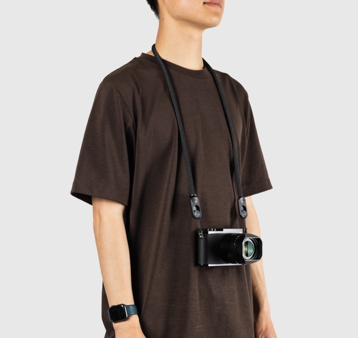 - Aluminium accessory loop for on-body strap stowage or single-point camera carry of point-and-shoots (crossbody sizes only - not on neck size)